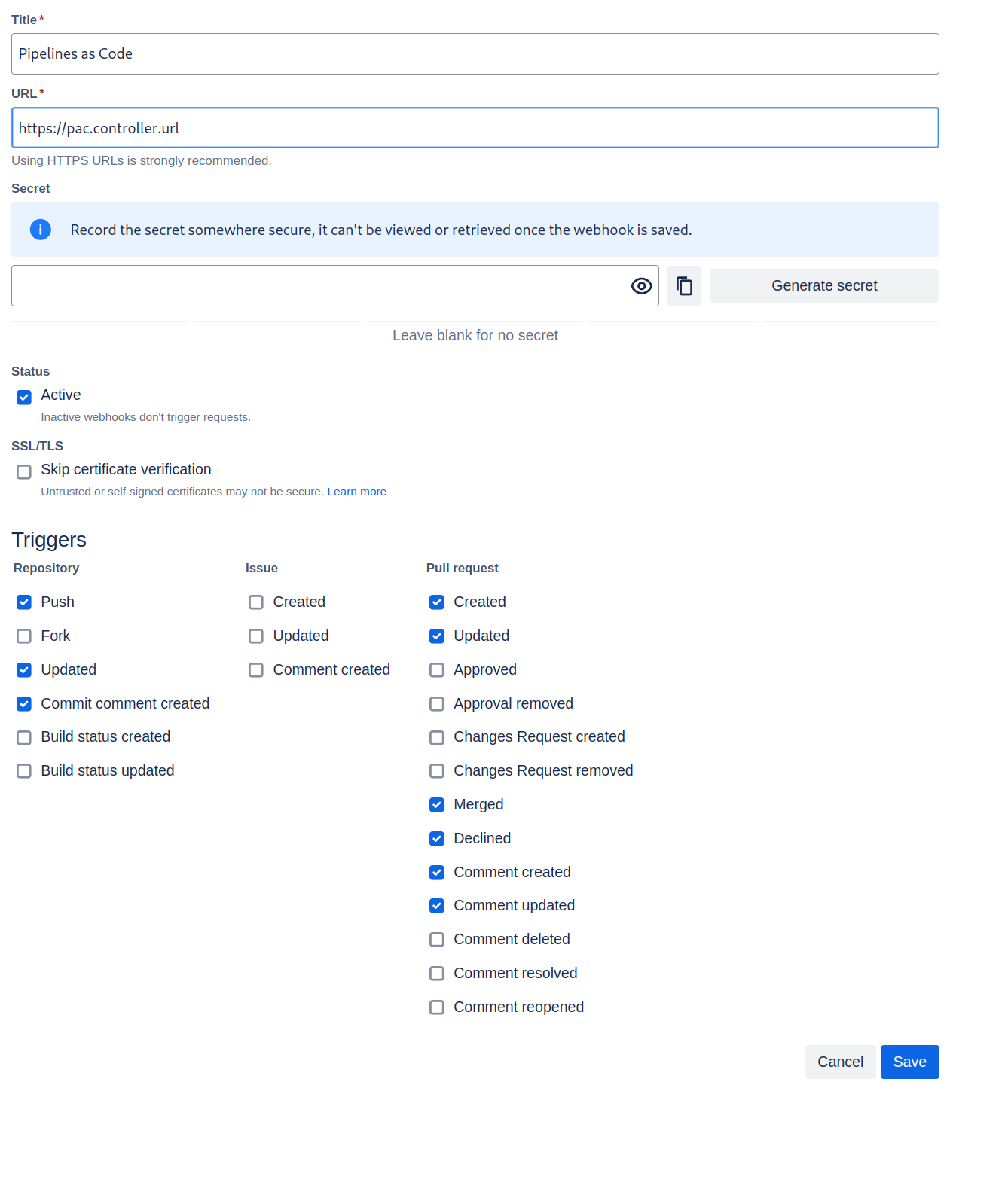 , if webhook secret has been deleted (or you want to add a new webhook to project settings) for Bitbucket Cloud, usetkn pac webhook add